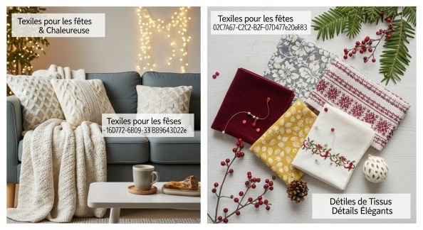 - Plaids et tentures à motifs hivernaux : affichés sur un pan de mur, ils deviennent un fond de scène chaleureux pour les photos de famille.