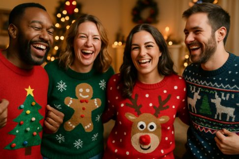 - Défis costumés : imposez un accessoire farfelu (bonnet de Noël, pulls kitsch, lunettes de star), voire une consigne spéciale « en duo attachés par le bras ». Fou rire garanti.