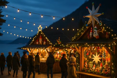 La neige amplifie le charme des marchés de Noël. Les chalets en bois arborent de jolies toitures blanchies, les guirlandes lumineuses scintillent doublement par leur reflet sur la poudreuse, tandis que le ciel, souvent gris ou ouaté, accentue les contrastes de couleurs avec l’artisanat local mis à l’honneur.