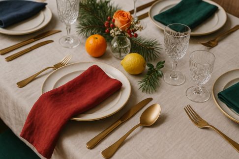 - Les chemins de table superposés : Mélangez toile de jute et velours coloré, un chemin botanique vintage sur une nappe blanche, ou une simple bande de kraft personnalisé par les enfants.