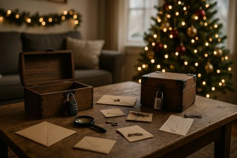 - Escape game-maison : Transformez une pièce en salle d’énigmes à résoudre tous ensemble avec indices cachés et petit sablier.